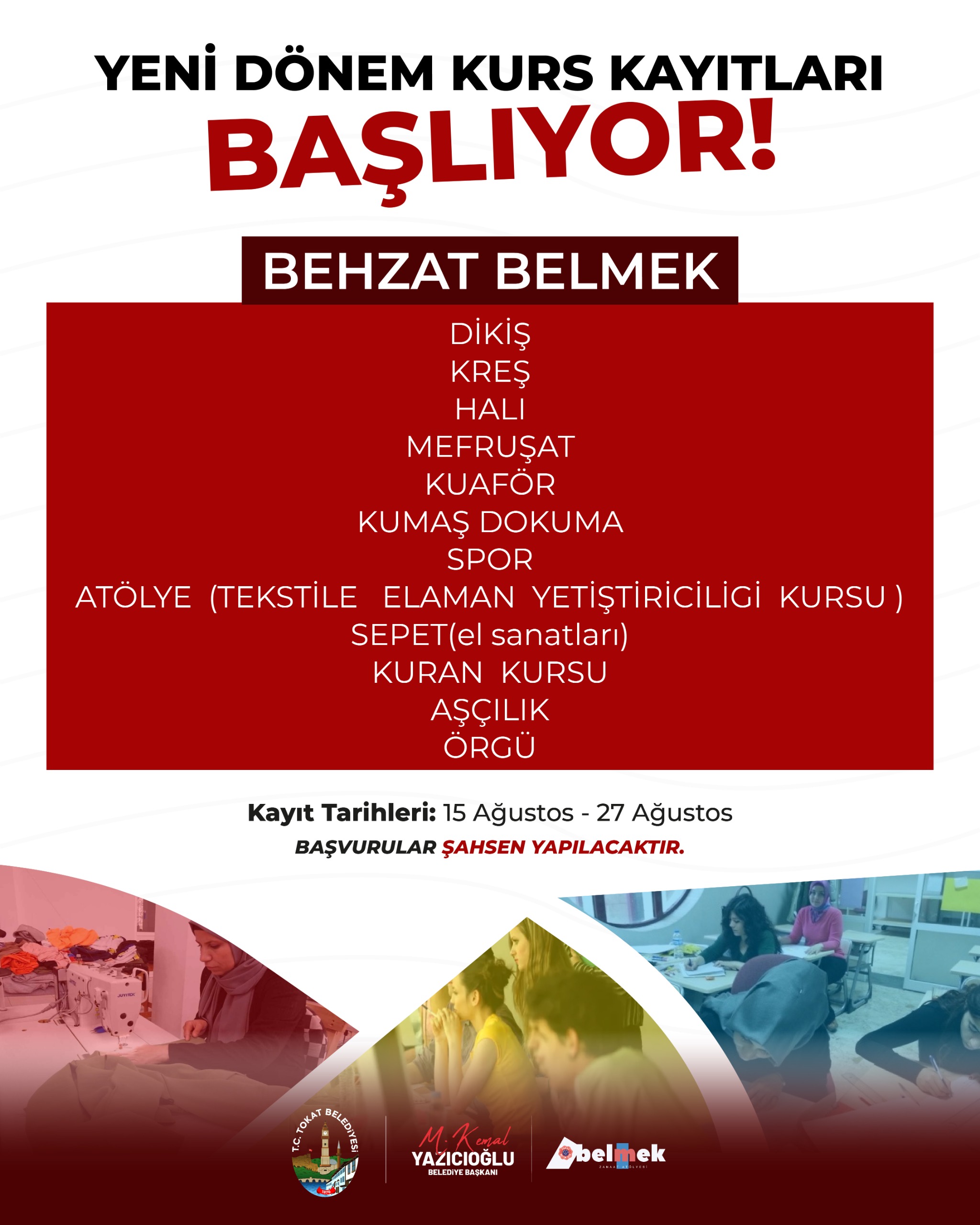 Tokat Belediyesi’nden yapılan açıklamada yeni dönemde BELMEK’lerde açılacak kurslar: